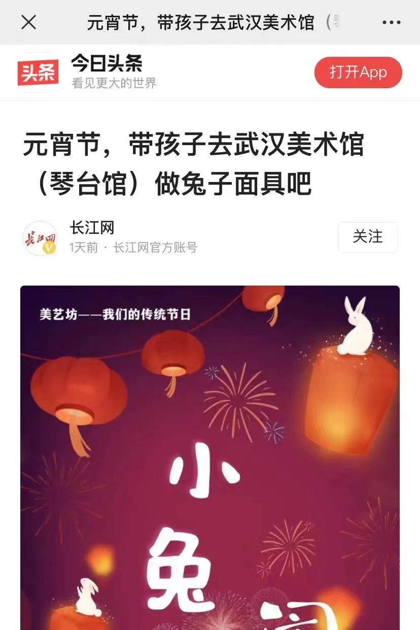 此次的“小兔兒爺鬧元宵”公教活動激發(fā)了孩子們的創(chuàng)造力、鍛煉了孩子們的動手能力,令傳統(tǒng)佳節(jié)煥發(fā)蓬勃朝氣,引發(fā)了觀眾和媒體的一致好評,今后,武漢美術(shù)館將持續(xù)發(fā)揮自身優(yōu)勢,為社會美育貢獻力量。
