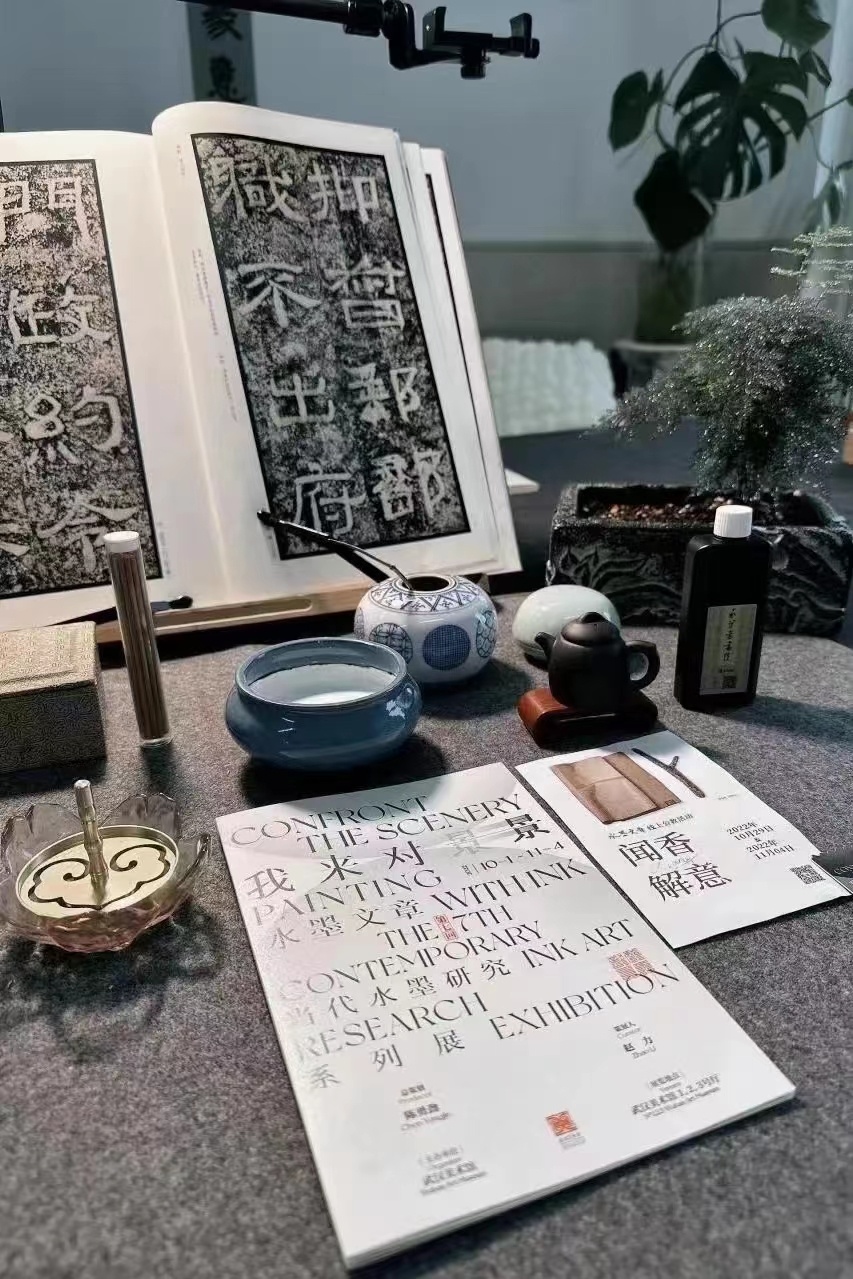 自古文人多雅趣,書法香篆為其二。執(zhí)筆起落,中鋒顯露,香粉引燃送來陣陣芳馨。《聞香解意》活動(dòng)將水墨和工藝相結(jié)合,帶領(lǐng)觀眾在筆墨的起承轉(zhuǎn)折間和繚繞的香霧里體會(huì)傳統(tǒng)水墨到當(dāng)代水墨的打破桎梏的創(chuàng)新過程。