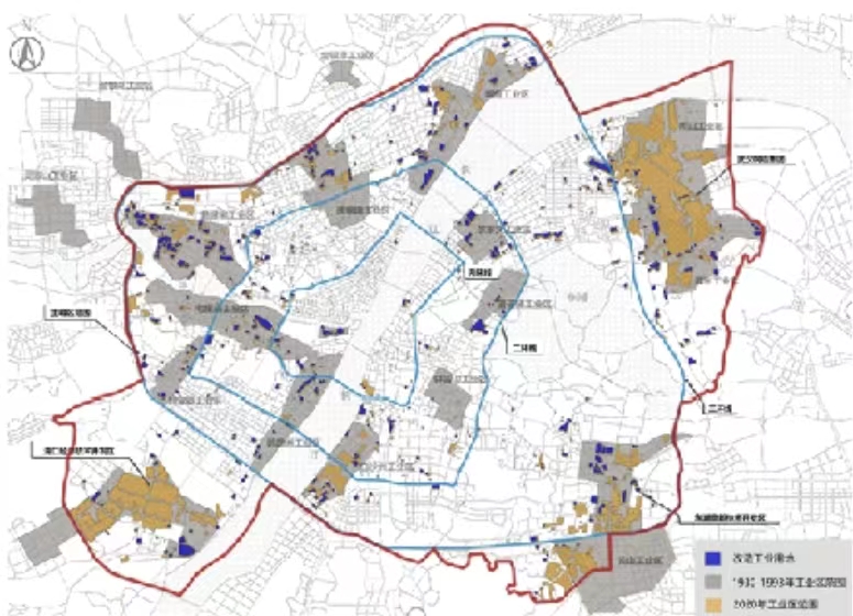 1949年以后,武漢三鎮(zhèn)的空間一體化基本成型,工業(yè)區(qū)開(kāi)始從融合區(qū)域,也就是新的中心區(qū)域開(kāi)始外遷。新的大型聯(lián)合企業(yè)形成的工業(yè)中心逐次落戶與武漢當(dāng)時(shí)的郊區(qū)。經(jīng)過(guò)近半個(gè)世紀(jì)的發(fā)展,當(dāng)這些區(qū)域再度成為新的城市中心區(qū)域,在地理上面臨去工業(yè)化的要求武漢作為湖北省域工業(yè)化進(jìn)程的源頭,沿長(zhǎng)江與漢江形成的工業(yè)化擴(kuò)展,在后工業(yè)化時(shí)代留下的遺存分布也印證了這一歷史進(jìn)程。