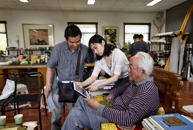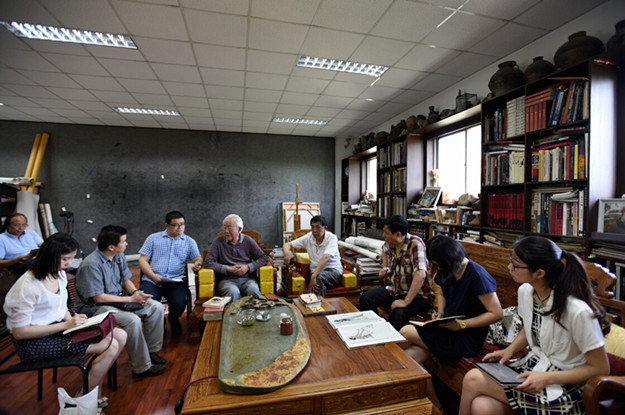 6月23日上午,武漢美術(shù)館館長樊楓、副館長劉宇、藝術(shù)總監(jiān)高小林、館長助理宋文翔及相關(guān)工作人員一行拜訪了原湖北省文聯(lián)主席、著名藝術(shù)家周韶華老師,就即將在武漢美術(shù)館開幕的大師系列展“蒼山為岳——石魯作品展(暫定主題)”對其進行了采訪。周韶華老師作為國內(nèi)最早關(guān)注研究石魯先生藝術(shù)創(chuàng)作的學者之一,撰寫有《大風吹宇宙——石魯作品集序》等文章。