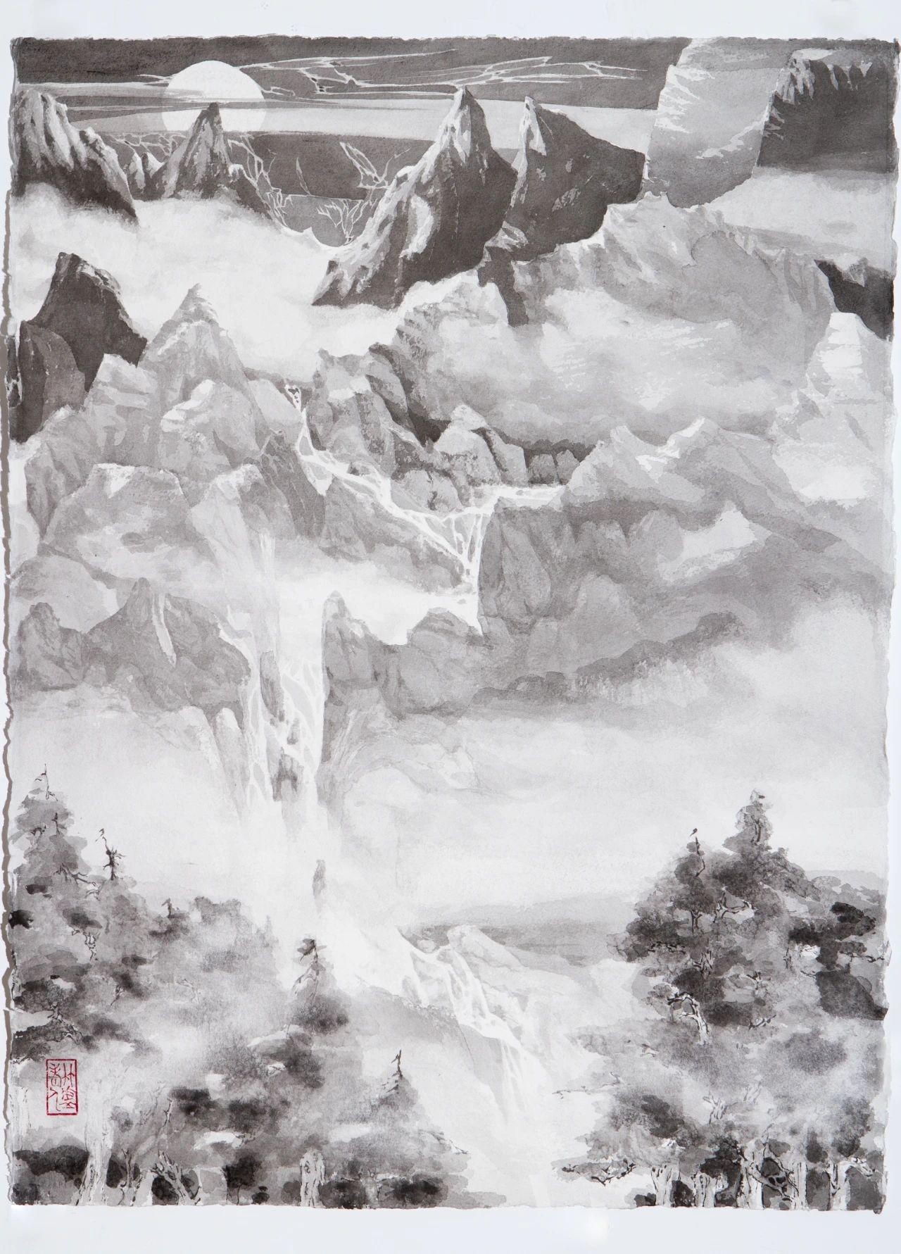 傳統(tǒng)的中國(guó)水墨畫(huà)強(qiáng)調(diào)“意在筆先”,追求“審美境界”,寄托作者的情感和意境,而非對(duì)客觀現(xiàn)實(shí)世界的描繪與再現(xiàn)。這種“意境超越寫(xiě)實(shí)”的審美觀念,對(duì)于西方藝術(shù)家來(lái)說(shuō)是一種挑戰(zhàn),也是一次探索和突破的機(jī)會(huì)。同時(shí),中國(guó)水墨畫(huà)特殊的技法和材料,也給其他不同文化語(yǔ)境下的藝術(shù)家?guī)?lái)了新的啟發(fā)。