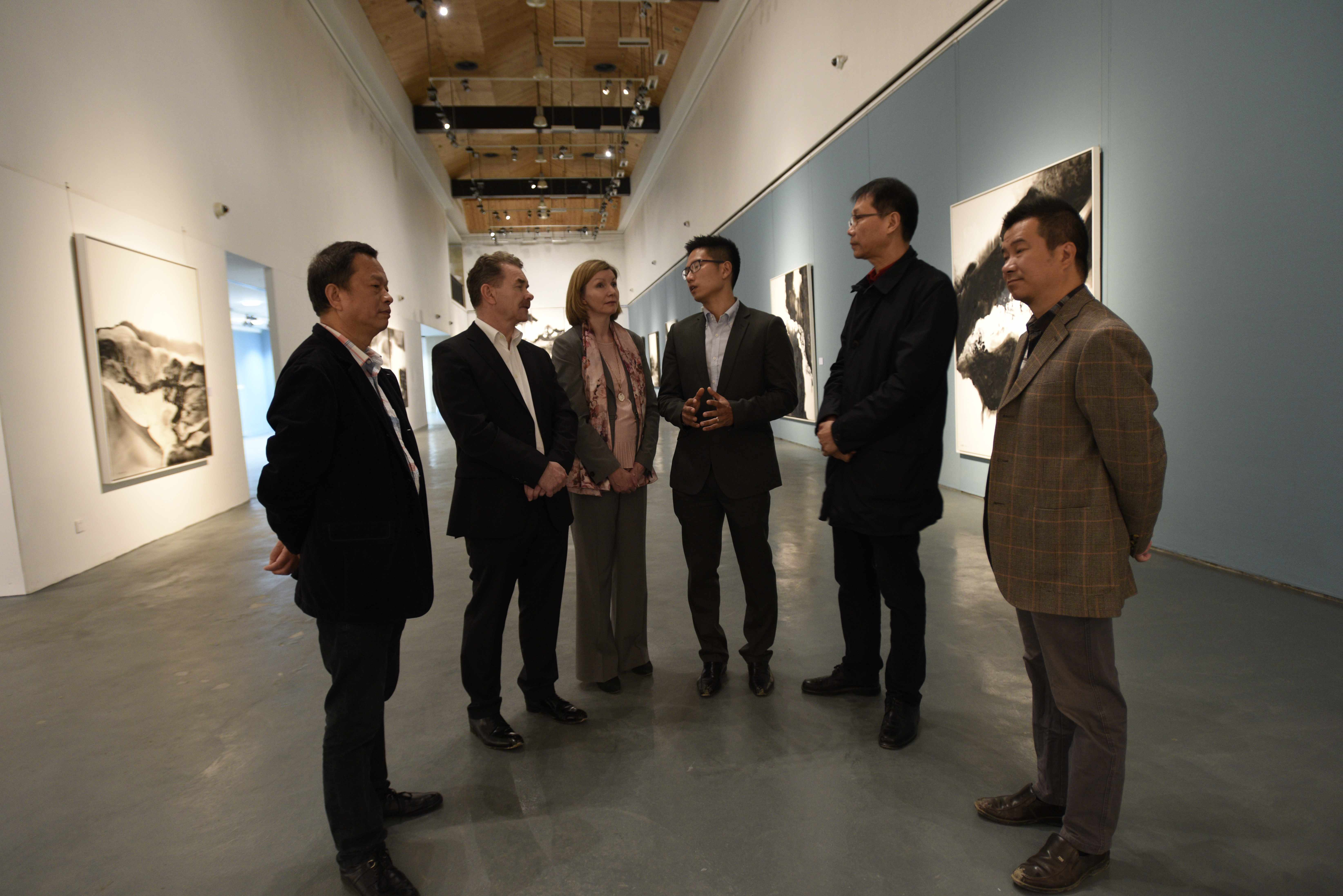 2016年10月24日上午,愛爾蘭阿斯隆理工學(xué)院校長(zhǎng)凱榮·歐·凱恩一行來到武漢美術(shù)館參觀了正在展出的“中國(guó)風(fēng)——王心耀作品展”,武漢美術(shù)館副館長(zhǎng)劉宇、館長(zhǎng)助理宋文翔、藝術(shù)家王心耀陪同參觀。