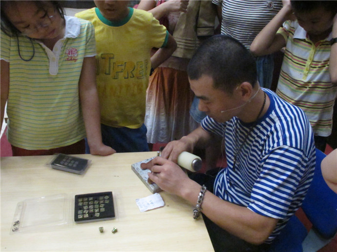 9月14日下午2點半,魯老師如約而至,為孩子們上了一堂生動活潑的手工皮藝課,讓孩子們知道了手工皮藝的歷史傳承和制作工藝.魯老師還特地為每一位小朋友準備了小馬形狀的皮鑰匙扣,孩子們都在自己的小馬上印上了自己的名字.生肖.星座,至此每一位小朋友的作品都成為了全世界獨一無二的,這就是手工制品的獨特魅力.可惜由于時間有限,小馬鑰匙扣的作品還沒有全部完成,我們期待下一次課的到來,讓小朋友們可以把自己親手制作的小馬鑰匙扣做完帶回家.