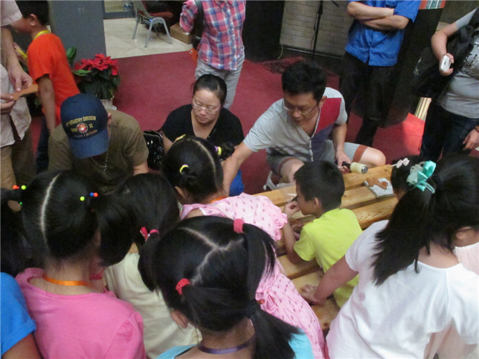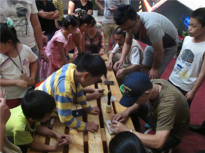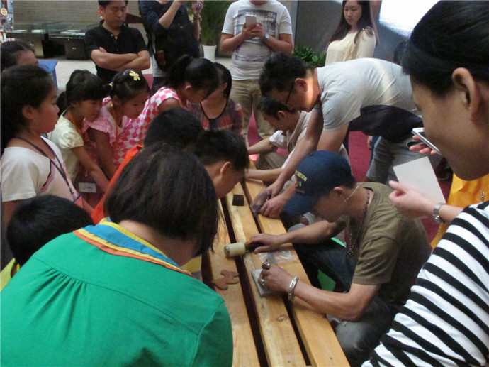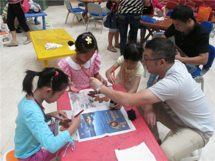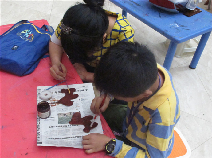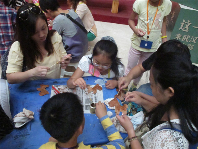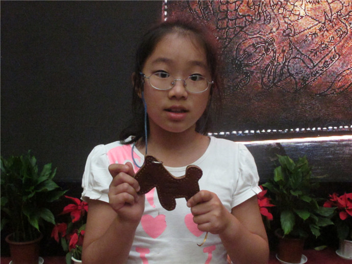 10月7日下午2點(diǎn),魯老師準(zhǔn)時來到了美術(shù)館,這次他還請來了周老師為小朋友們共同講解和示范手工皮藝的制作工藝.印制日期,染色,涂膠,粘合,縫線,小朋友們親自動手,一個個獨(dú)具特色的小馬鑰匙扣就這樣誕生了.