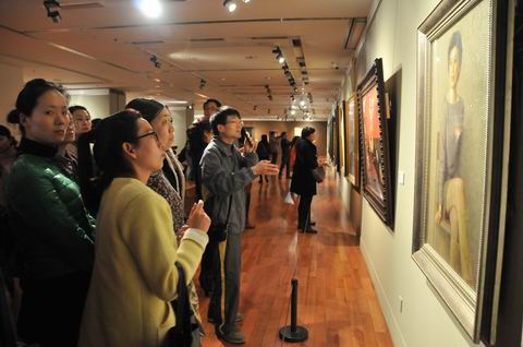 3月19日下午,江岸區(qū)教育局組織80余位小學美術(shù)教師觀展團到我館參觀《中華意蘊——中國當代油畫藝術(shù)展》,我館志愿者曹恒(湖北美術(shù)學院油畫專業(yè)碩士畢業(yè)生)擔任此次觀展團的講解。曹恒首先對整個畫展的概況進行了介紹,隨后就各個時期有代表性的畫作進行了詳細解讀,從題材、技法到風格進行了一一介紹,因為前來參觀的觀眾本身就是美術(shù)專業(yè)教師,在看展時還提出了許多較為專業(yè)的問題,與志愿者曹恒及我館員工進行深入交流,整個過程輕松愉悅,雙方都收獲良多。
